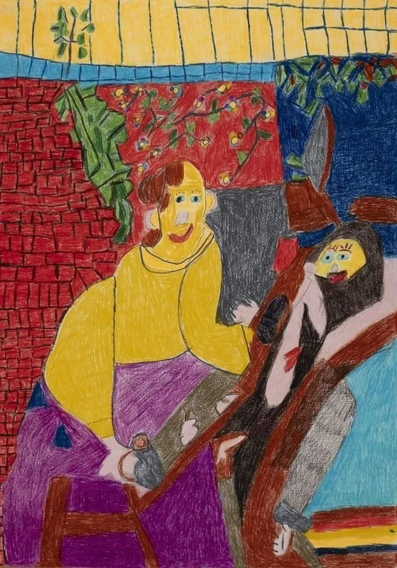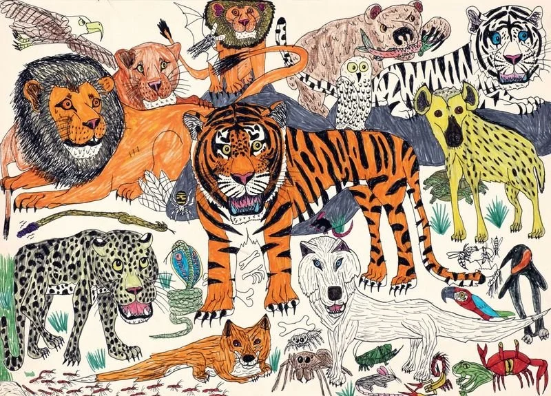 collage van eigen tekeningen op papier