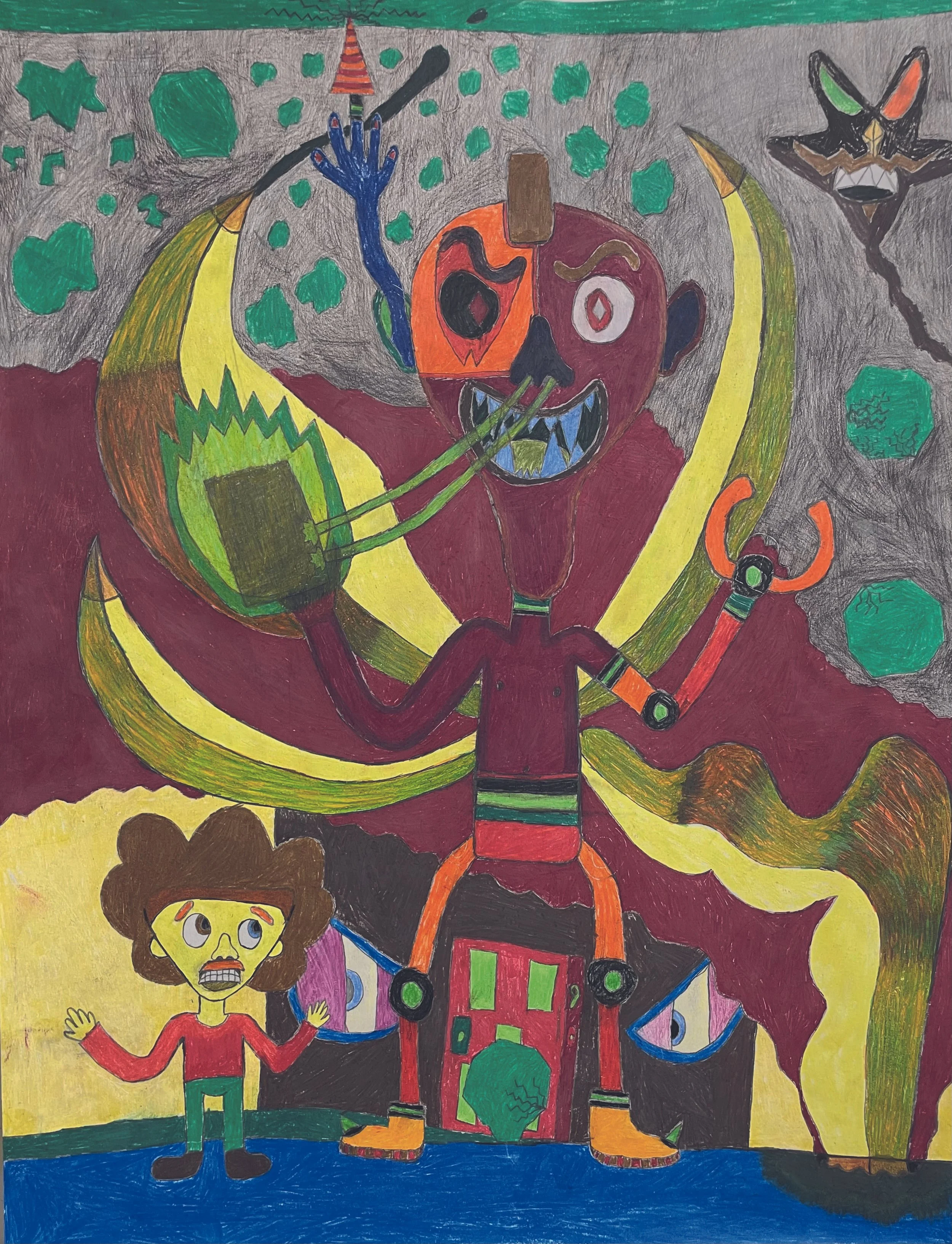 50 x 65 cm - acryl en oliepastel op papier