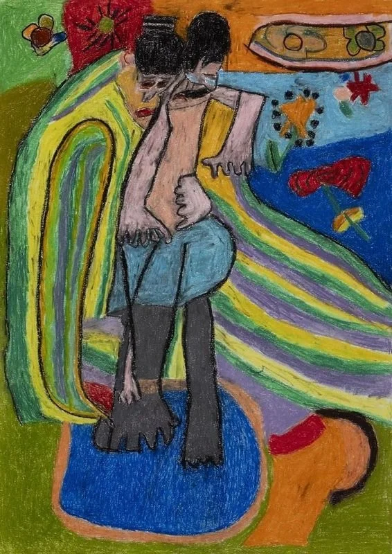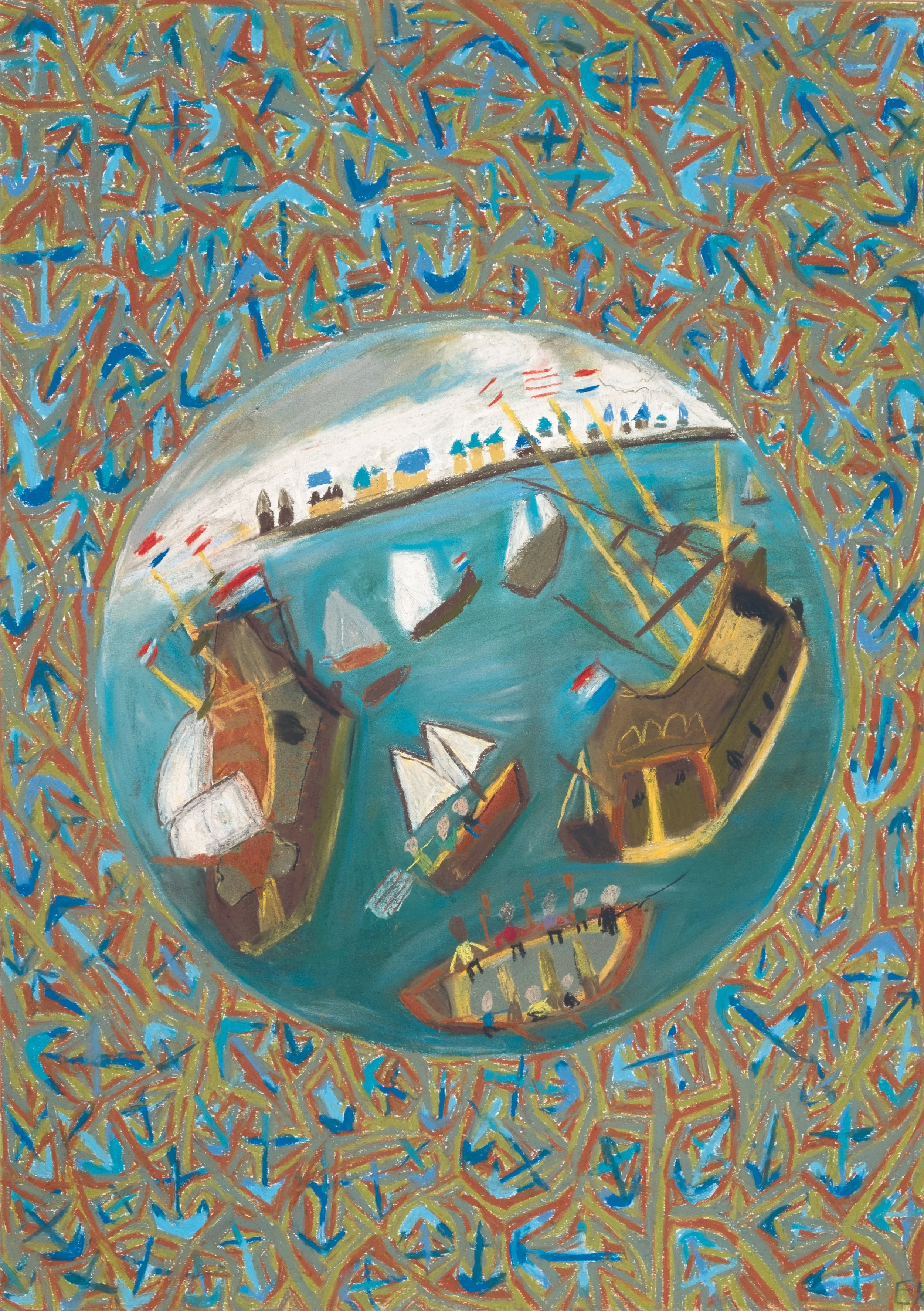 32 x 50 cm - oliepastel op papier